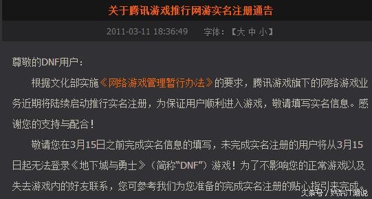 早期的端游《地下城与勇士》网游,官方从2011年3月就开始发布DNF网游实名制注册的公告。以及网游《穿越火线》都进行了实名制注册。