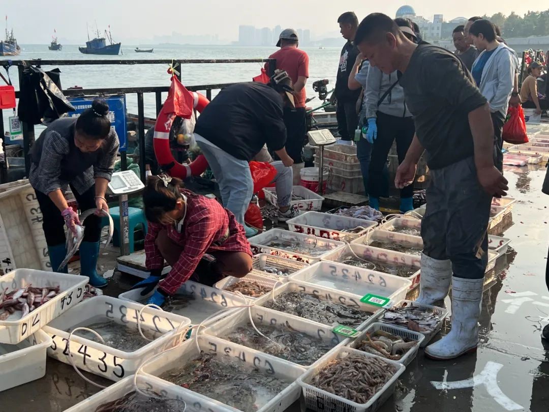 陆陆续续有顾客前来挑选、购买海鲜。