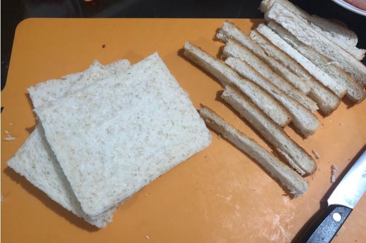 2、我这次做的就是一个人的量,我家孩子自己就能吃掉。所以要是打算给家人都做这个早餐的话就要多准备吐司了。食材也是要多准备一些才行。