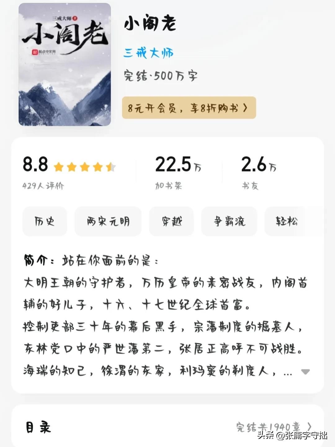 【点评】《小阁老》,著名网络作家三戒大师所著。
