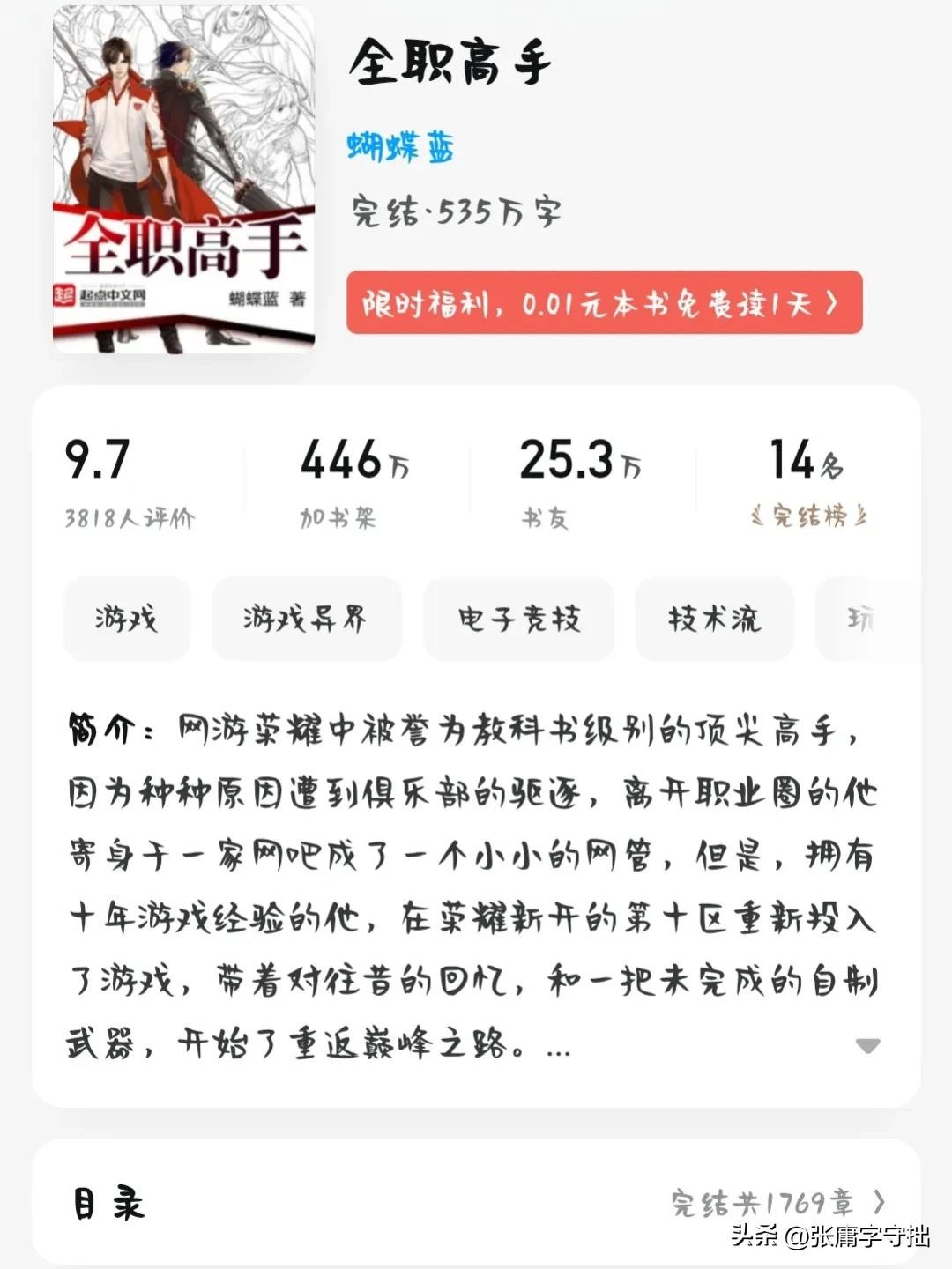 【点评】《全职高手》,著名网络作家蝴蝶蓝所著。