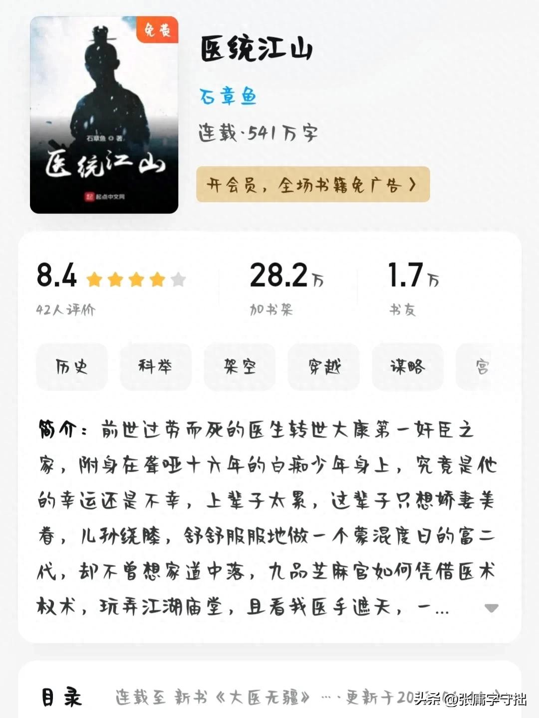 【点评】《医统江山》,著名网络作家石章鱼所著。