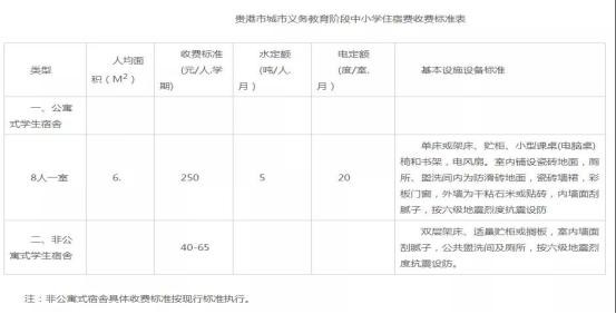 贵港市城市义务教育阶段中小学住宿费收费标准表(贵价费〔2016〕25号)