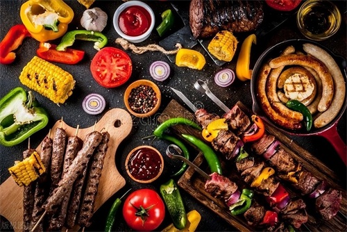 各种食材串起来烤着吃,香气四溢,英文是Kebab。