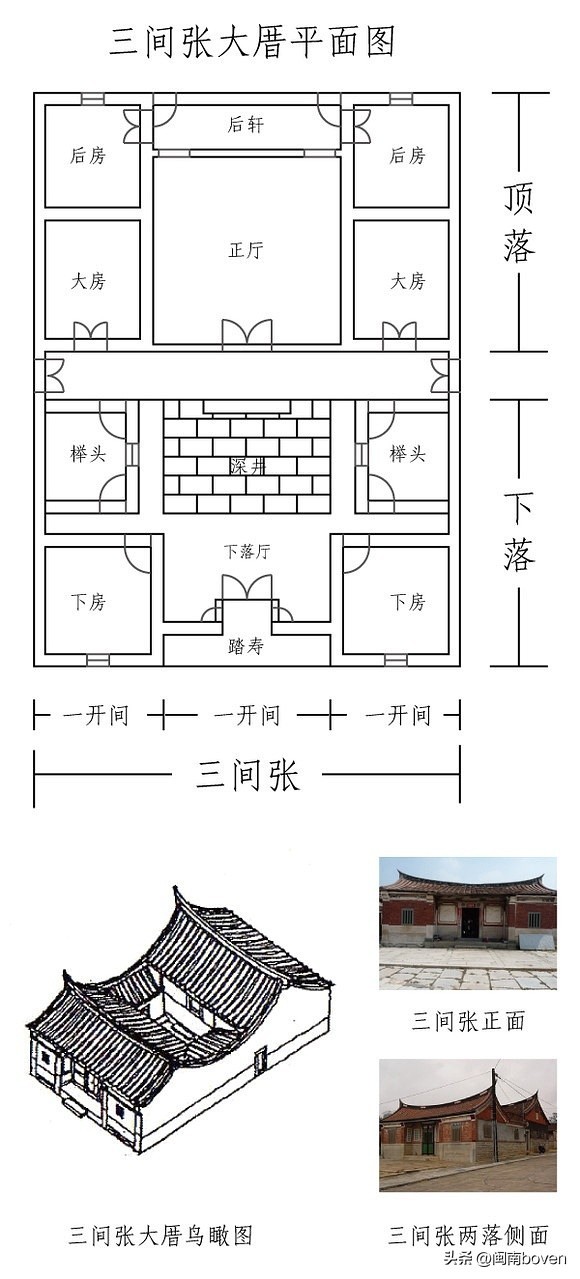 上面两幅图分别详尽地展示了古厝的基本结构,笔者此处不再赘述。