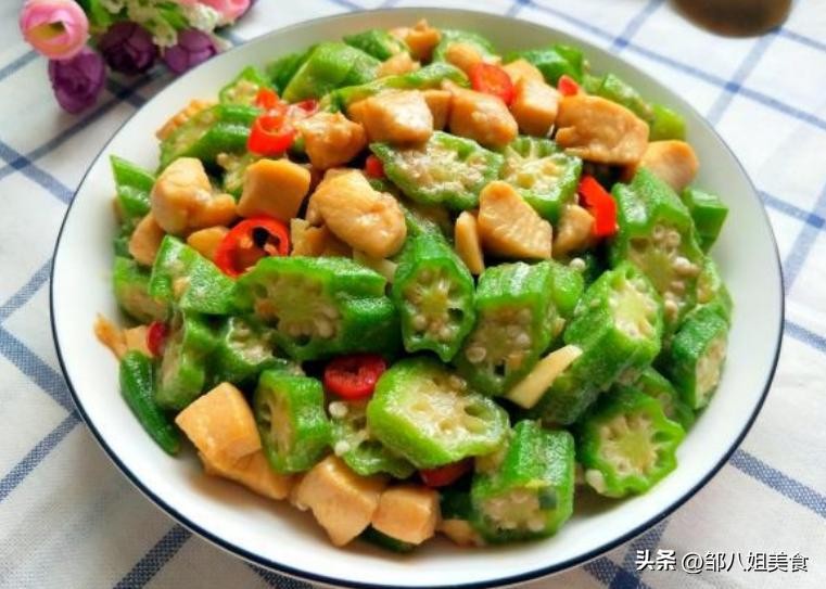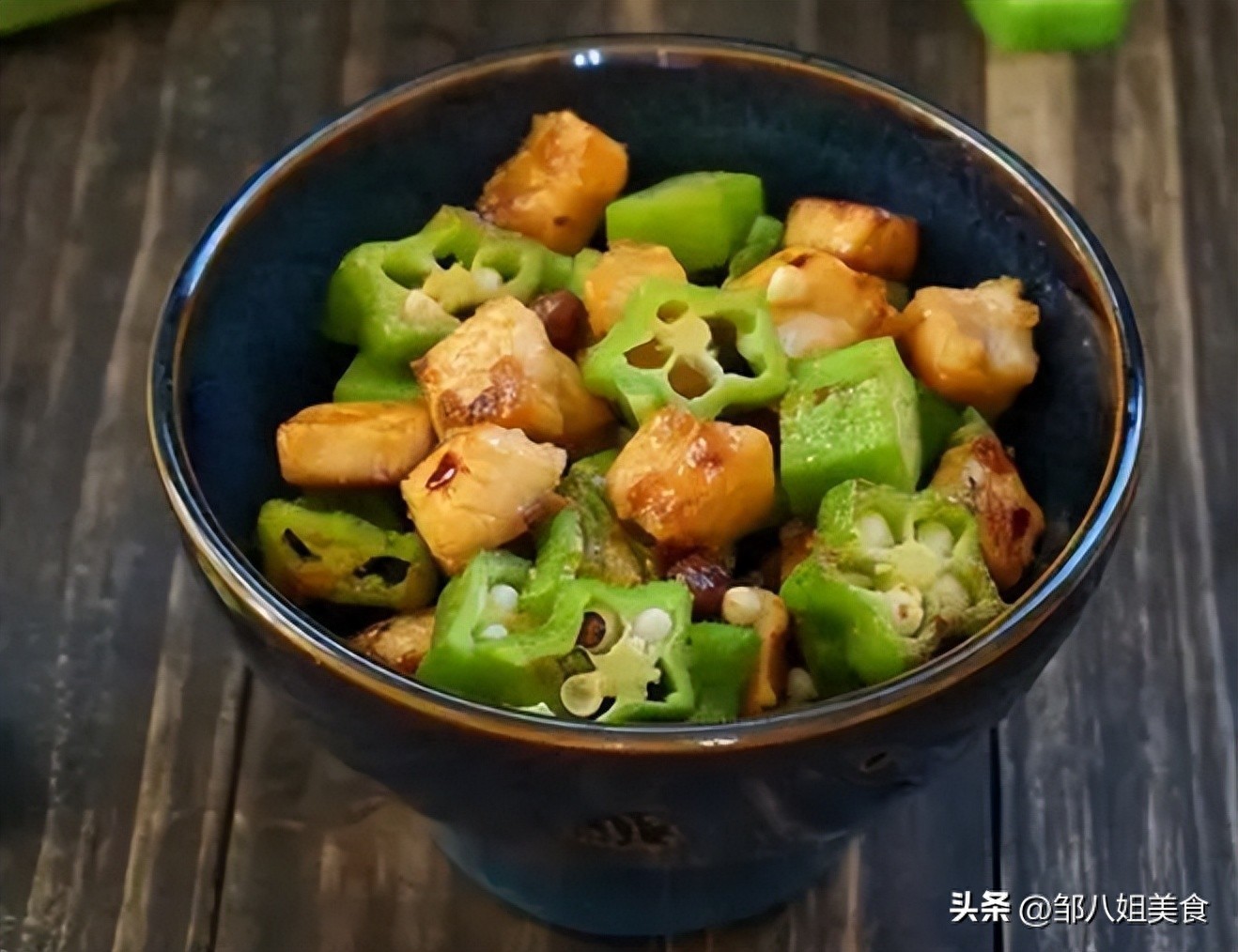 最后倒入秋葵翻炒均匀,再加入盐、胡椒粉、鸡精快炒均匀,就可以出锅了。