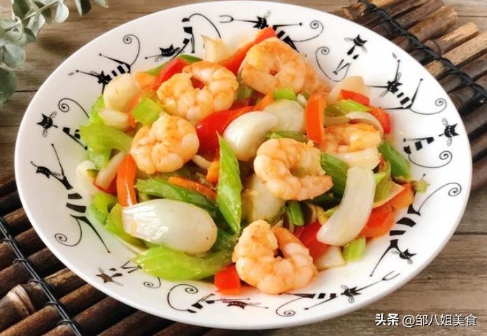 大虾取出虾仁,去掉虾线,冲洗干净。西芹清洗干净,斜刀切成小段。新鲜百合掰成一片一片洗净。红椒洗净切小块,葱蒜切末待用。