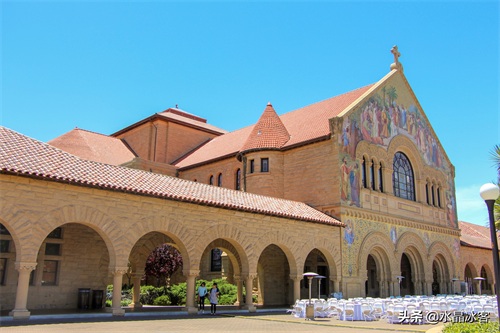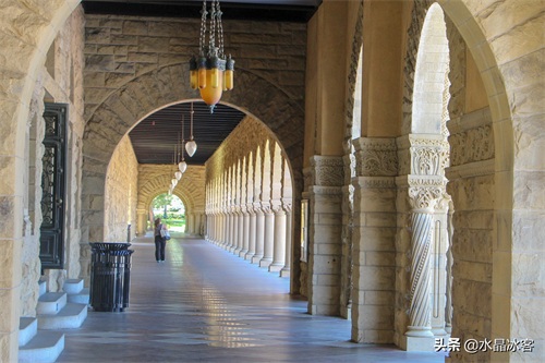 在我看来:斯坦福大学的建筑更像城堡或教堂什么的。历史系的大门就像修道院,门上方那座白色的雕像,远看就像是一个十字架。