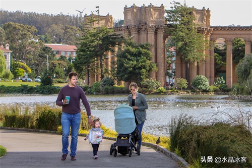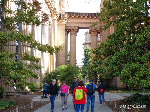 一群野鸭和白天鹅在池中游弋,眺过一汪碧波粼粼的池水,旧金山艺术宫座落于此。旧金山艺术宫原建于1915年,本是为了巴拿马“太平洋万国博览会”所盖,现在是一座供人们休闲娱乐的公园。