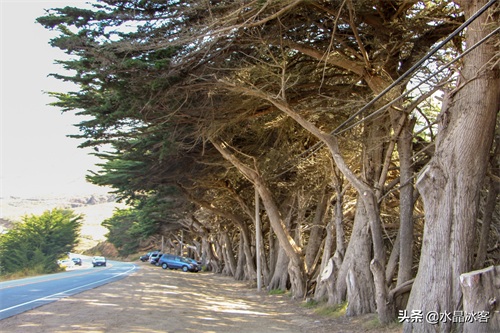 美国一号公路的民间起点就在著名的景区“17英里海湾”,在IN-OUT Burger汉堡店填饱肚子快15点,赶到此地已18点了。天阴了下来,微风阵阵。路边的柏树已被经常性的大海风吹到了一边。