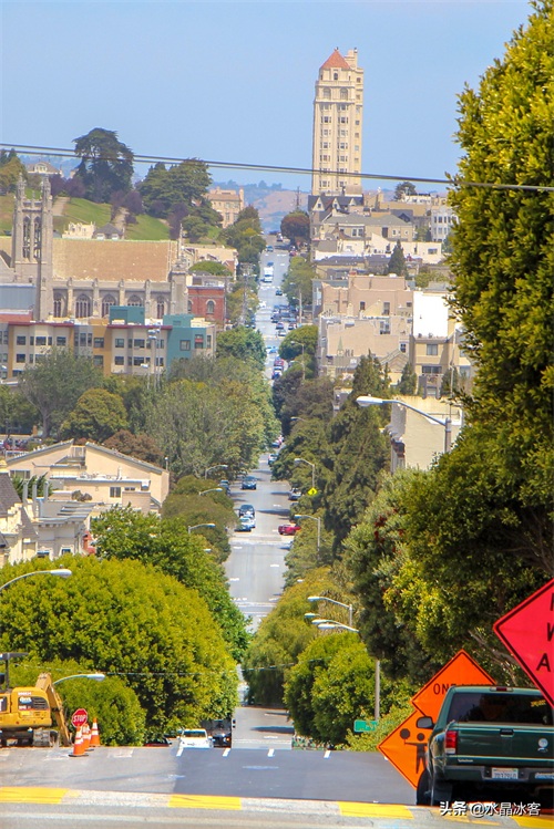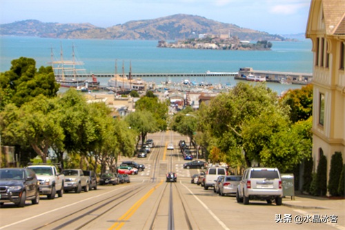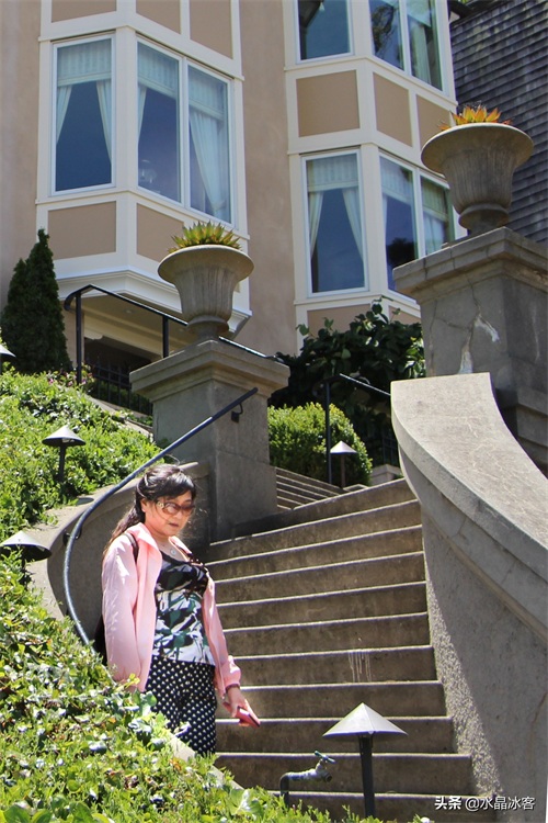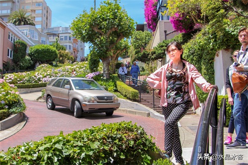 旧金山是一座山城,道路的坡度很大,是《盗梦空间》的拍摄地。“老司机”小李在遇陡坡时都要换成手动挡。我们把车停在一个路边免费停车处,然后步行500米去这次旅行的第一个景点:“九曲花街”。
