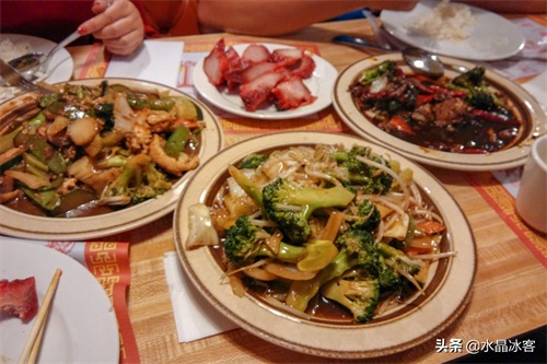 点了四个菜,近100美元,换算人民币投120元人民币/人。菜的品相还不错,看起来像川菜,但吃起来却像粤菜或浙菜,胡椒味较重。其实,国外的中餐都是这样的改良品种。