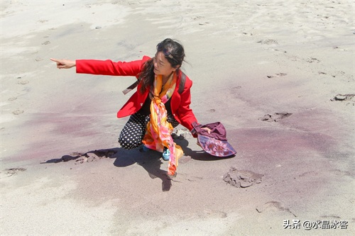 不是整个海滩的紫色含量都像刚才那一片的那么高,紫色海滩的其它区域是见不到紫沙的,或偶尔能看见一小块紫沙。