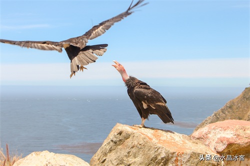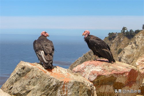 就像网上说的一样,美国1号公路处处是景,走过一段之后有些审美疲劳了,没有停车点的景点,或停车点小了的景点,一律“翻过”。前面有一处停车点,风景平平,但有许多蹲下身,静静观看的人们。停车,移步悄悄靠近,看清楚了:是两头巨大的鹰四目相对。先生赶紧将单反对准了它们。