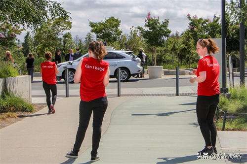 上午11点,游客渐渐多了起来,随之出现了几个穿红色T恤的志愿者姑娘,看来谷歌公司对游客来访早有准备。话又说回来,为了知名度,谁又不希望公司的园区成为旅游景点呢。