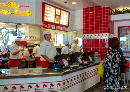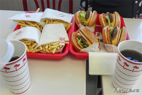 IN-OUT Burger类似于麦当劳的那种连锁快餐店,点好餐等待屏幕上的号,在柜台专门的取餐点取餐。正宗的汉堡快餐,量足,味道也行。