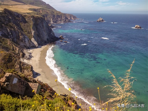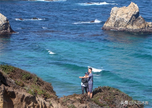单凭比克斯比大桥的颜值,是不足以让游客记忆深刻的,那还要归功于大桥旁边的海岸线。向南看,悬崖峭壁,奇峰异石,如果不是看见拍在沙滩上的白浪,还以为那蓝得见底的海水是静止的呢。