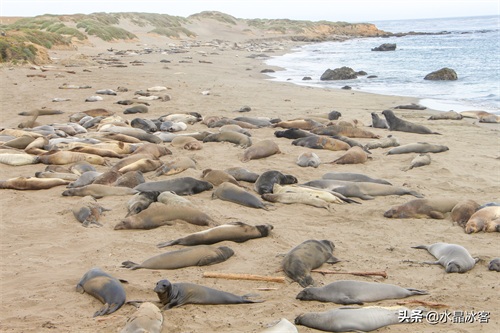海象滩周围有一米高的栅栏,沙滩上摆满了或像一具具“尸体”或像一包包麻袋状的海象,它们胡乱地躺在沙滩上,正在午休或晒太阳呢。