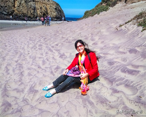 美国紫色沙滩被认定为世界唯一,但这个紫色并不是一片的紫。紫沙是含某矿的沙,我估计这里的紫沙与普通沙大概按1:10混合的。紫色是一种代表高贵的颜色,由冷静的蓝色与温暖的红色化合而成,海边的紫沙也是要在阳光充足的天气才能看出它的紫,难道这也是因蓝色的海与温暖的阳光所契合吗。