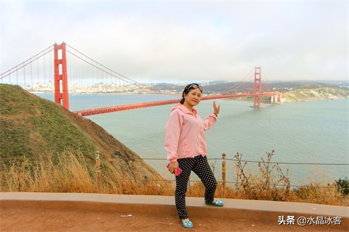 金门大桥是旧金山的地标性建筑,全长2737.4米,宽27.5米,高227.4米,跨越金门海峡。著名的“雾锁金门”就是在此地出现的,可惜的是,今天的云不多,无雾。