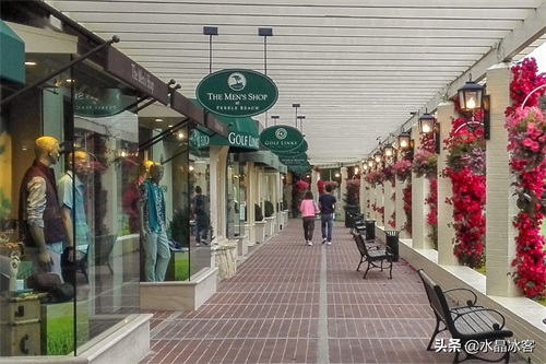 一共有四个高尔夫球场坐落于17英里海湾风景线上,其中有世界上最棒的的高尔夫球场卵石滩Pebble Beach球场。卵石滩经营高尔夫用品的商店沿一条长廊依次排列。