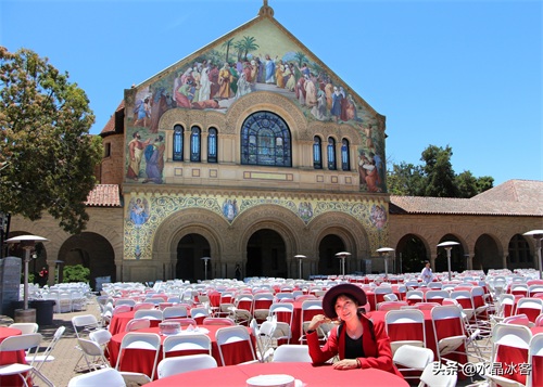 远远地就能望见校园那座最高的建筑:胡佛纪念塔。它是庆祝施坦福大学建校50周年而建的,同时为纪念时任总统胡佛对该校做出的贡献。同时看到施坦福艺术画廊打出的红色横幅:欢迎参观,免费。但今天的项目太多,没进。