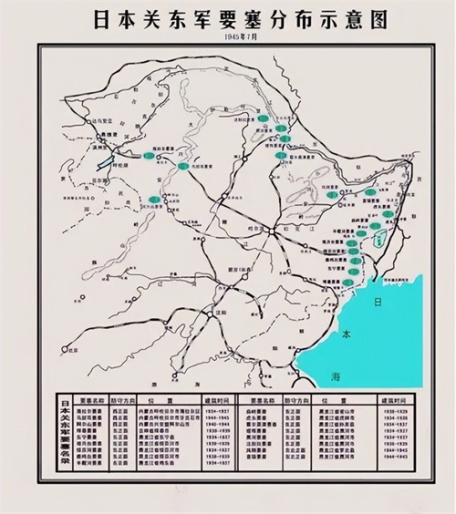 当然,自1933年开始,日军便在东北地区修建起军事要塞,到1944年,日军一共修建了1700多公里长的要塞,总长度甚至超过了法国人在同一时期(1932年开始)的马奇诺防线,例如在东宁阵地,日军共计修建永备火力发射点402处、土木结构火力发射点511处、战斗指挥所111处、钢筋水泥永久性掩体100处、钢筋水泥顶盖堡垒4处、火炮和迫击炮发射阵地79处等等,注意这还只是一个阵地,更不用说这1700多公里,日军的防御体系会有多严密。同时,截止到1945年战争结束,日军共计修建飞机场420多处,以此便于展开陆上和空中立体式防御。