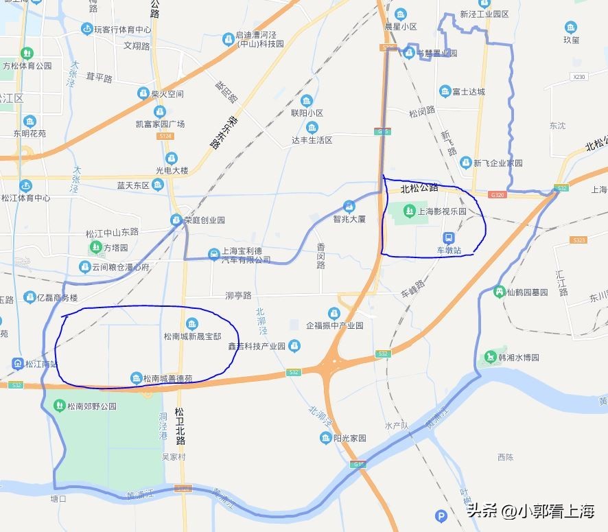 车墩板块本身面积还是很大的,大部分地区是工业园区,住宅的话主要分为两部分。一部分是车墩影视基地所在的地方,另一块则是靠近松江南站,是一个大型的动迁基地,也有称为叫松南城,松南城的南边还有一个松南郊野公园,占地面积比较大。