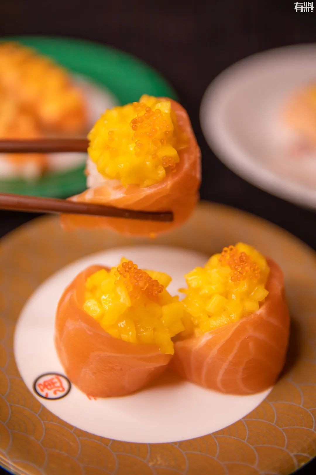 甜甜的芒果配上我最爱的三文鱼,再用蟹子点缀,甜味和鲜味在口中瞬间炸开。