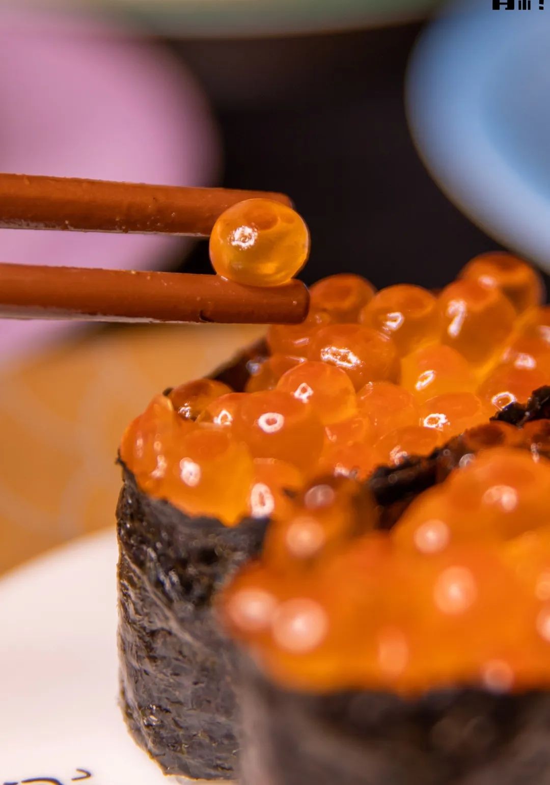 一口吃下去,让鱼籽一颗颗在口中爆破,让寿司米中和掉过多的咸味,去感受它的鲜美,保证你会爱上它!