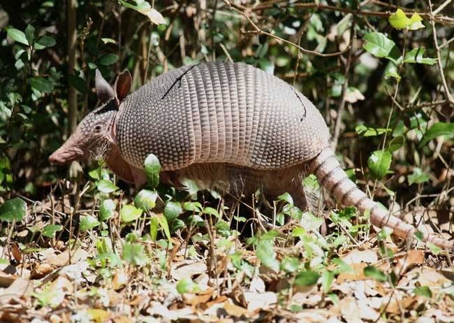 大犰狳由于腿短,不善奔跑,也不善于与天敌博斗,所以每当遇到敌害无法逃脱的时候,就马上把身体蜷缩成一只硬甲球,将较为柔软的头、胸、腹等部位全部藏在盔甲之内,常常使小型食肉兽类无法下口,奈何不得。不过,如果碰上狼、猞猁、野猪等较大的食肉兽类,或者当地土著的印地安人的猎犬,其锋利的牙齿能够咬穿它的鳞甲,使其防御体系彻底失灵,所以这些动物也就成了它的主要天敌。其实它最大的敌人还有汽车,在沿海岸的公路上,常常可以看见被汽车撞死的尸首,因为它具有一种奇怪的跳跃反射,每当一辆汽车疾驰而来的时候,就立即垂直地跳离地面,碰撞到汽车上而死。