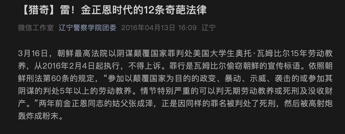 辽宁警察学院团委-《【猎奇】雷!金正恩时代的12条奇葩法律》