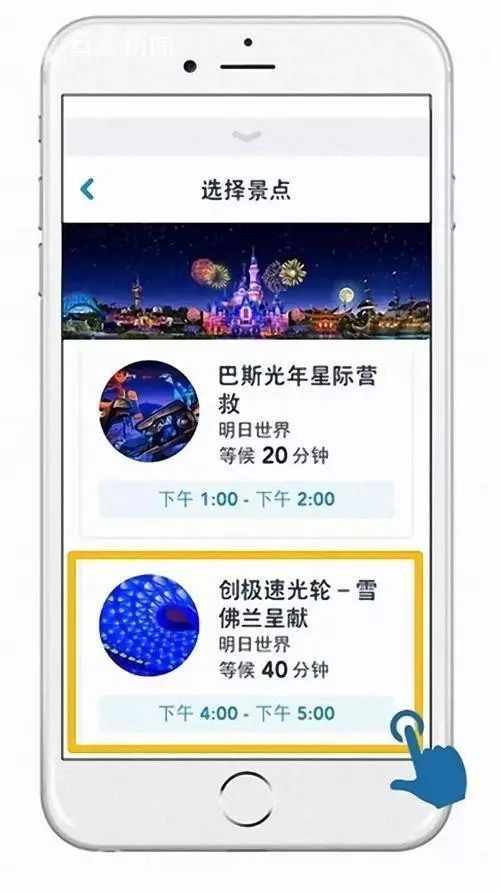 其次,进入迪士尼乐园刷门票后(须是过闸机刷门票,激活门票),把已激活的乐园门票与手机APP 关联,按照提示浏览、选择及预约迪士尼快速通行证。