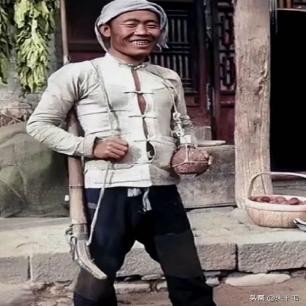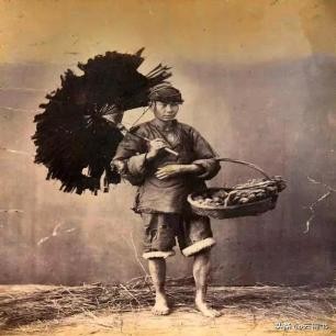 图为晚清时期,上海街头的一个走街串巷的水果小贩