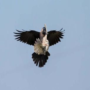 鹰隼怎么也想不到,居然会遇到一只吨位比自己还要大的乌鸦