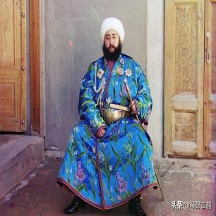 1910年,埃米尔赛义德·米尔·穆罕默德·阿里姆·汗在布哈拉坐着,手里拿着一把剑。