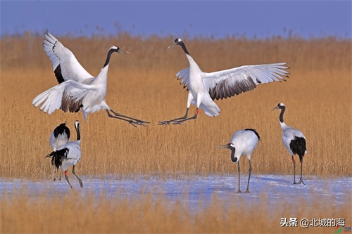 丹顶鹤是国家一级保护动物,濒危物种,头顶有红肉冠而得名,有吉祥、长寿的寓意。