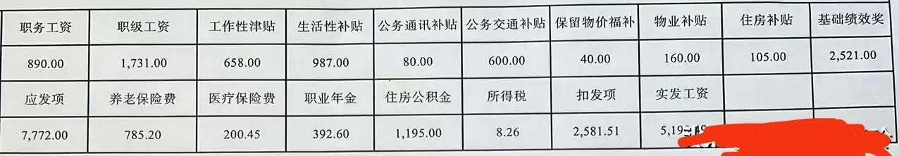 上面那些收入加起来,就是十年科员网友每个月的应发项目7772元。
