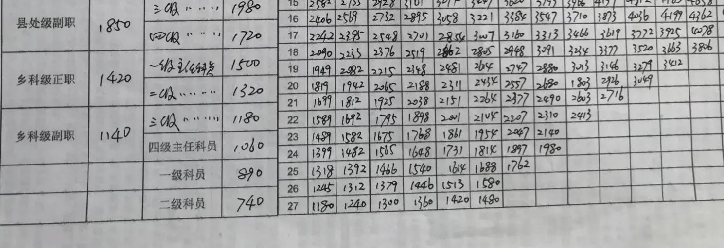 图一的公务员工资表显示,这名公务员职务工资是890元,对应图二的一级科员职务。这图对应现在是2023年八月的工资,没错,八月刚开始,工资就发了,体制内就是这样的,大家都太穷了,这个月的工资这个月先发了,不然不够钱交房贷了,555。不要说灰色收入,现在的普通公务员,基本没有。