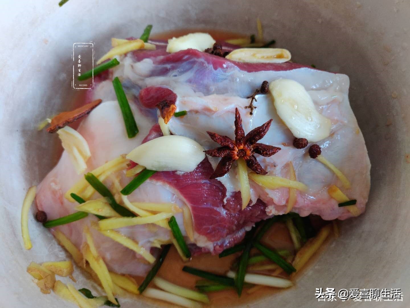 调味料:食盐3勺,香葱一把,老姜一块,料酒2勺,花椒少许,八角一个,桂皮一块,香叶1张,大蒜2瓣。