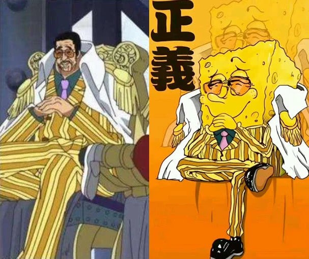 《海绵宝宝》和《海贼王》是两部超人气动画,本来这两部动画一部是美国做的,一部是日本做的,两者之间并没有啥关系。但是强大的网友们却用一张恶搞图把它们强行联系了起来。那就是那张传说中的“《海绵宝宝》版三大将”。