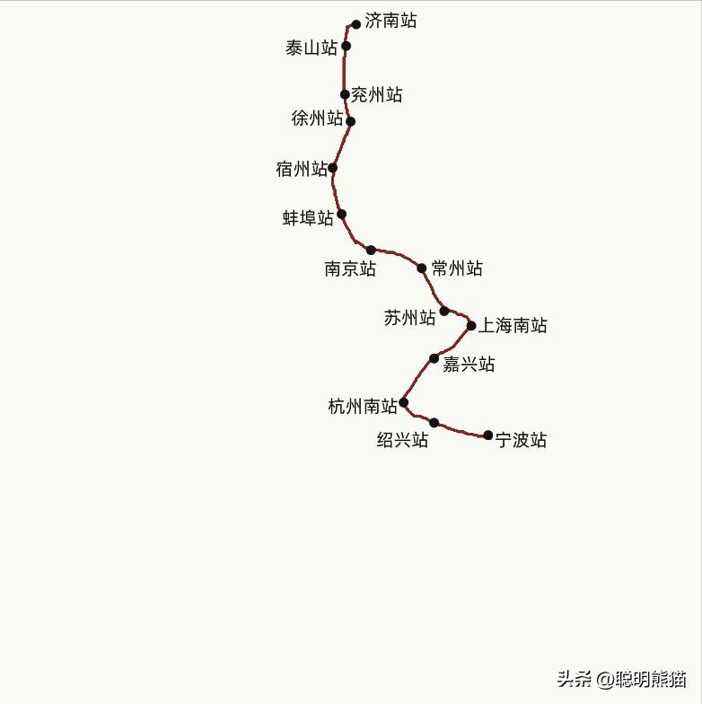 综上所述,本次列车全程运行1314千米,用时15小时36分,平均速度84.2280千米/小时。如果减去列车停靠车站93分钟,列车平均速度约93.5220千米/小时,列车途经山东省、江苏省、安徽省、上海市、浙江省等四省一直辖市,列车停靠济南站、泰山站、兖州站、徐州站、宿州站、蚌埠站、南京站、常州站、苏州站、上海南站、嘉兴站、杭州南站、绍兴站、宁波站等十四座车站