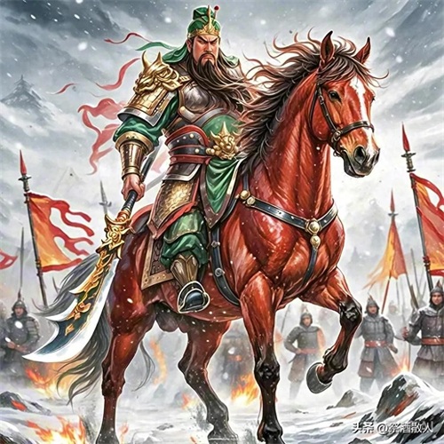 2. 关羽:使用青龙偃月刀,以忠义勇猛著称,斩颜良诛文丑。