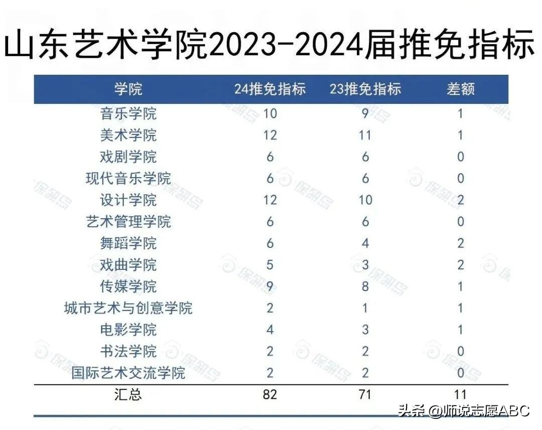 山东艺术学院2024届(对应2020年入学的本科生)推免指标82人。