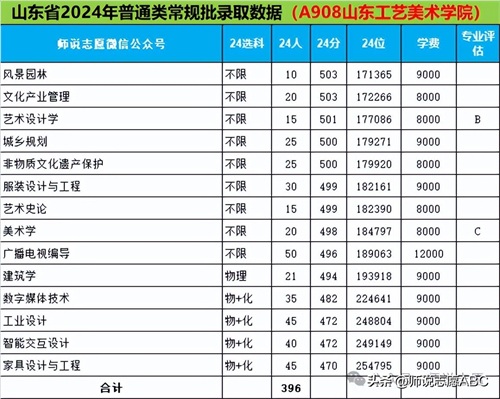 山东工艺美术学院2024年全国校友会排名第452名,山东省排名第31名。2024年在山东省招生的普通专业最低录取分470分(254795)-503分(171365)。