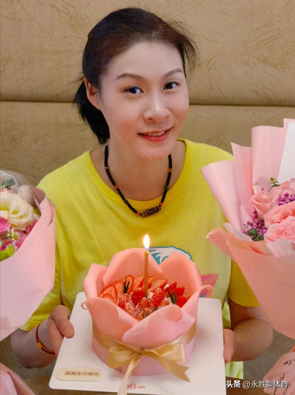 赵蕊蕊也在社交平台上晒出自己的近照,穿着黄色的短袖,手捧粉色蛋糕,扎着马尾辫,皮肤白皙紧致,看起来状态很不错,肤白貌美,虽然已经41岁了,但依旧面貌非常年轻,这可能跟她的心态也有关系。