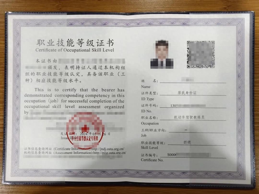 机动车驾驶教练员证书样本