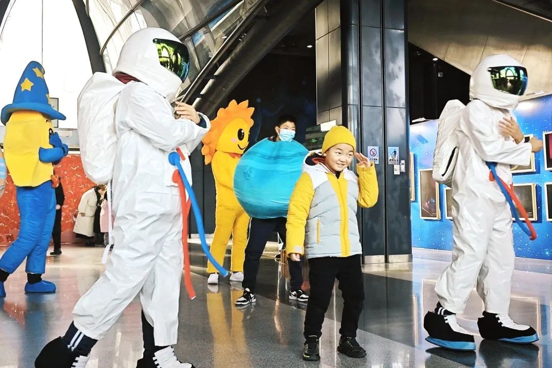 最受小朋友们欢迎的莫过于“太空飞行棋”和“星际奇遇,欢乐巡游”活动。在“太空飞行棋”游戏中,小朋友们化身小小航天员,在棋盘上勇闯太空,开启航天探险,在游戏中学习航天知识,感受航天魅力。而“星际奇遇,欢乐巡游”则让小朋友们与身着八大行星和宇航员玩偶服装的志愿者们亲密互动,在欢声笑语中学习天文知识,收获精美的新年礼物。