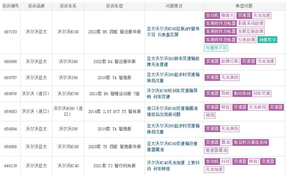 从质量上看,爱信8AT(AWF8)整体评价还算高,毕竟是沿袭了爱信6AT,整体结构设计基本没有大问题,但我们在车质网上也看到了一些对于爱信8AT(AWF8)变速器的投诉,比如有些新款沃尔沃的车主就表示出现了变速器无法加速、换挡抖动、故障等现象。
