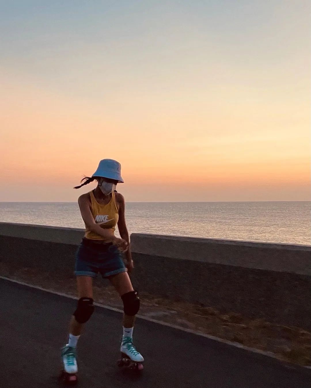 在海上学习冲浪时,她觉得就算是跌倒都是愉悦的,只会一次比一次更有冲劲,认真地学习好每一项运动技能。